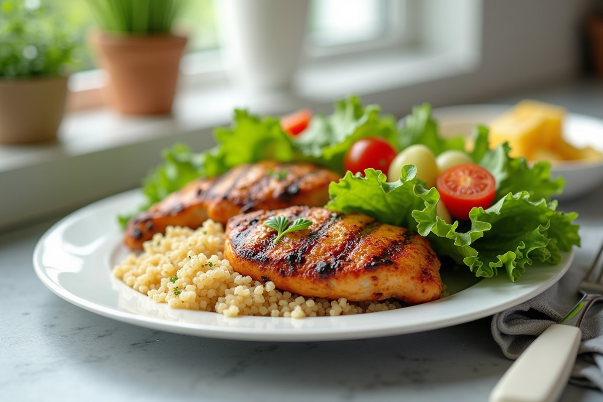 - Protéines : Elles sont essentielles pour la récupération et la croissance musculaire. Un apport de 25g par repas est recommandé, soit environ 30% de l’apport total en calories.